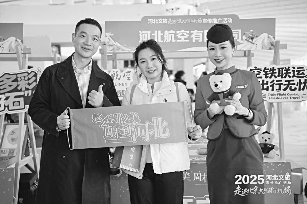 本报讯(记者 刘文静)12月24日,河北航空联合河北省文化和旅游厅开展的“冬游河北”文旅推介活动亮相北京大兴国际机场。