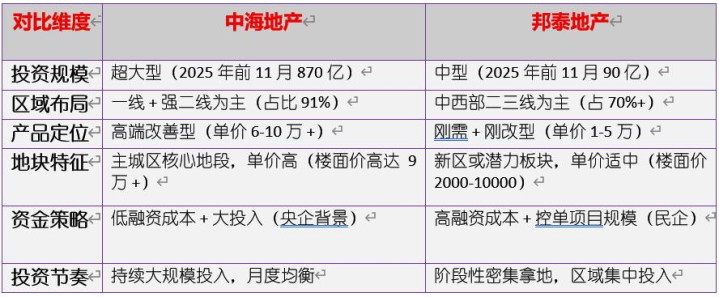 即央企中海在核心一二线城市的核心地段频频出手,而民企邦泰则在中西部二、三线新区或是高潜力板块持续深耕。